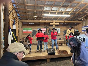 Join us for Cowboy church! Ride your horse over to our ranch, or drive up in your car. People of all ages are welcome! We have a family-friendly environment where you will learn about Jesus, hear the word of God, sing, and eat together after the service.